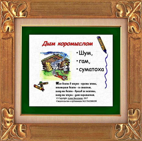 Иллюстрация "Дым коромыслом" - это захватывающее произведение искусства, которое открывает перед зрителем огромное пространство для фантазии и творческого восприятия. На ней изображен дым, который тонко и изящно завивается, создавая впечатление, будто он пляшет на невидимых веревочках. Формы и линии, сотканные из дыма, создают сложный узор, напоминающий хрупкую коромысло, наделяя иллюстрацию особой грацией и легкостью. Эта работа вызывает чувство загадочности и мистики, приковывая внимание зрителя и заставляя задуматься о тайнах и причудах окружающего мира. Будьте готовы к тому, что иллюстрация "Дым коромыслом" оставит неизгладимое впечатление и станет ярким украшением вашего интерьера или коллекции искусства.