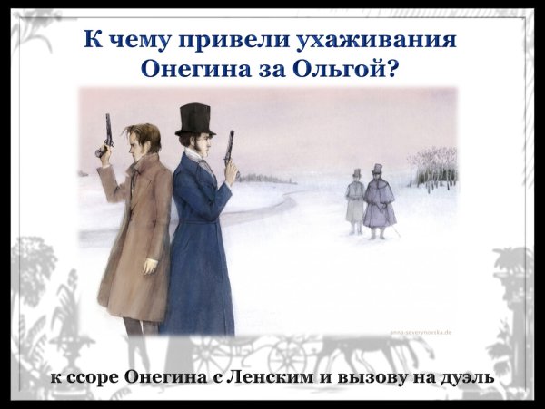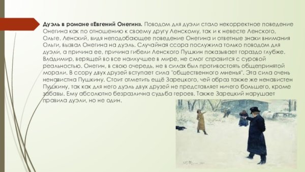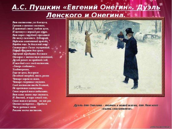 Дуэль Ленского и Онегина - это эмоционально насыщенный и драматический момент из романа А.С. Пушкина "Евгений Онегин". Иллюстрации, воплощающие эту сцену, позволяют зрителям полностью погрузиться в атмосферу напряженной битвы двух героев. Они улавливают душевные переживания и отражают тонкости взаимоотношений Ленского и Онегина, которые приводят к необратимому столкновению на поляне. Каждая деталь иллюстрации передает эмоциональную силу этой сцены: выражение лица героев, их жесты, позы и даже выбор окружающей природы. Иллюстраторы умело передают напряженность и непредсказуемость момента, создавая произведения искусства, которые заставляют зрителя пережить эти сильные эмоции вместе с героями романа. Дуэль Ленского и Онегина продолжает оставаться одной из самых запоминающихся и важных сцен в литературе, и иллюстрации помогают воссоздать ее мощь и глубину.
