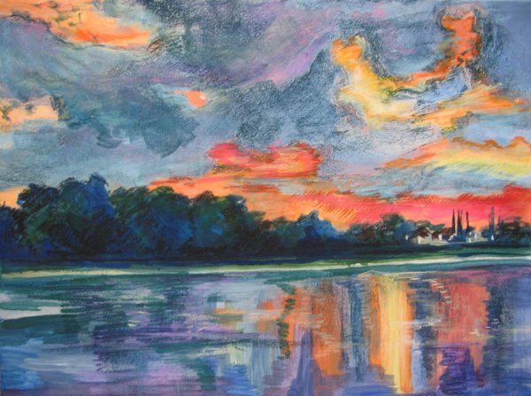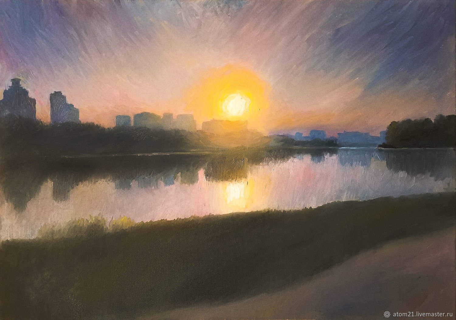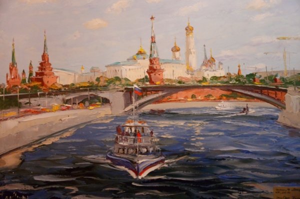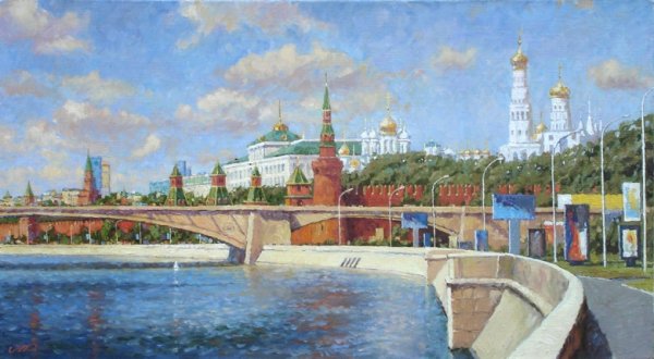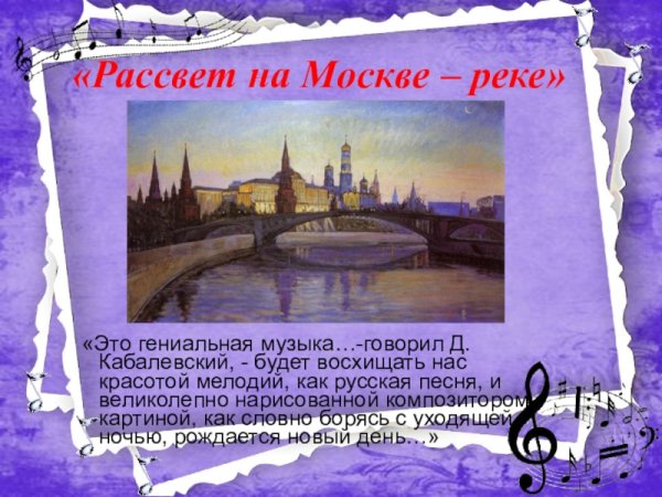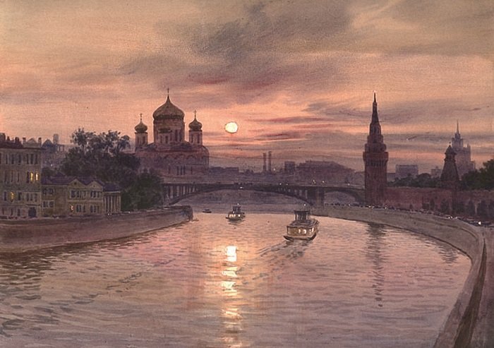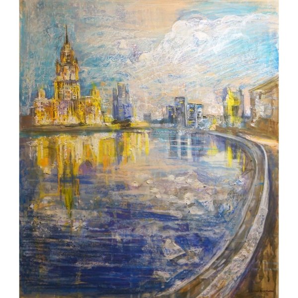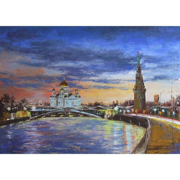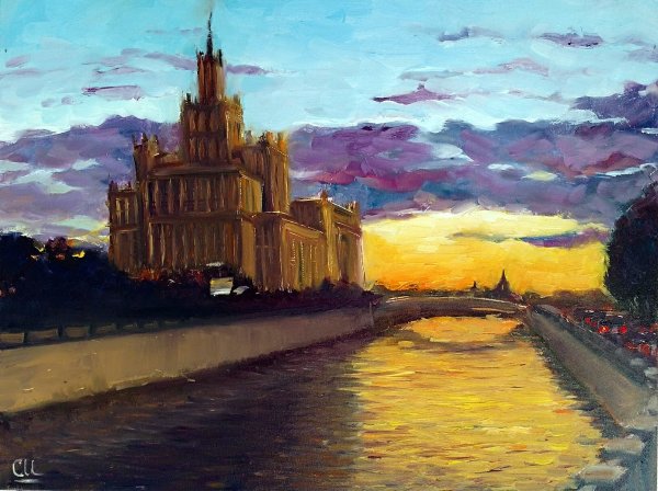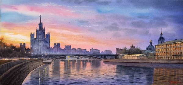 Представьте себе волшебный момент рассвета на Москве-реке, когда нежные лучи солнца проникают сквозь туман и раскрашивают небо яркими оттенками. Эта иллюстрация захватывает весь великий пейзаж столичной реки, передавая ее спокойствие и величие. Вода зеркально отражает все вокруг, создавая впечатление, будто время остановилось, чтобы каждый мог насладиться этим удивительным зрелищем. Нежное розовое и оранжевое свечение заполняет небо, придавая картине атмосферу сказочности и загадочности. Рассвет на Москве-реке - это картина, которая окутывает душу теплом и восхищением перед красотой природы.