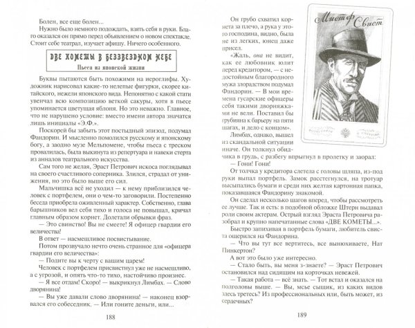 Погрузитесь в захватывающий мир театра, где каждое действие становится настоящим искусством. Интригующий писатель Борис Акунин приглашает вас в свои произведения, где каждая страница превращается в яркую иллюстрацию живописного спектакля. Чувствуйте атмосферу загадочности и интриги, позволяя вашей фантазии раскрыть все секреты, скрытые в этих увлекательных книгах. Отправляйтесь в замки и особняки, следите за развязкой загадок и раскрывайте тайны расследований вместе с героями Акунина. Ваше воображение будет окрылено, а сердце замирает в предвкушении новых открытий. Весь мир театр, и Акунин - его неподражаемый режиссер, способный оживить каждую страницу своих произведений через иллюстрации словами.