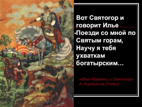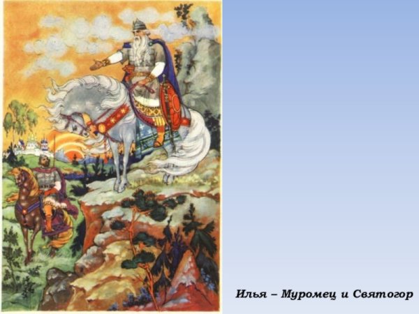 Иллюстрация "Илья Муромец и Святогор" является визуальным творением, которое воплощает мощный дух русской народной былины. Это изображение позволяет нам окунуться в эпический мир сказочных героев и пережить с ними захватывающие приключения. На этой иллюстрации мы видим Илью Муромца – легендарного богатыря, и Святогора – его могучего противника. Илья Муромец предстает перед нами как храбрый и непобедимый воин, готовый сразиться с любым врагом ради защиты своей земли. Святогор, в свою очередь, символизирует несгибаемую силу и мощь природы, ставящую на испытание даже самых отважных героев. Иллюстрация "Илья Муромец и Святогор" позволяет нам увидеть и почувствовать величие и магию русских былин, оставаясь вечным источником вдохновения и увлекательных историй для всех поколений.