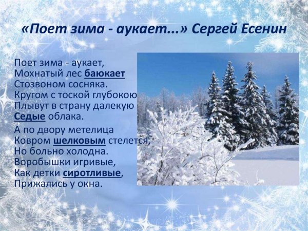Погружаясь в холодное волшебство зимней сказки, становится понятно, что поет не только ветер, но и сама природа. Красочные иллюстрации передают всю красоту зимних пейзажей, создавая атмосферу тишины и спокойствия. Аукая эмоциями и переживаниями, Есенин дарит нам свои стихи о зиме, о снеге и морозе. Сочетание этих элементов делает наши сердца трепетными и увлекает в мир, где время замирает под чарующие звуки и колоритные образы.