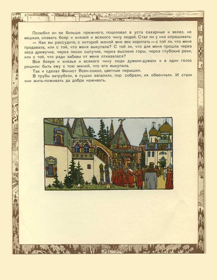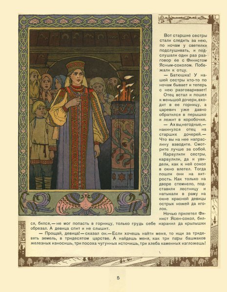 Великий художник Иван Билибин прославился своими уникальными иллюстрациями, в том числе и серией, посвященной русской народной сказке "Финист - ясный сокол". В этой сказочной истории рассказывается о загадочном герое, который превращается из сокола в красавца-принца. Билибин сумел воплотить в своих иллюстрациях всю магию и таинственность этой сказки, передавая неповторимую атмосферу и легендарных персонажей. Каждая деталь и каждый штрих иллюстраций Билибина пронизаны тонким чувством стиля и гармонии, что делает его работы поистине бесценными произведениями искусства. Разнообразные эмоции и чувства, которые вызывают эти иллюстрации, позволяют окунуться в волшебный мир русских сказок и ощутить всю их притягательность и великолепие. Билибин создал неповторимый образ Финиста - ясного сокола, который до сих пор является символом силы, красоты и света.