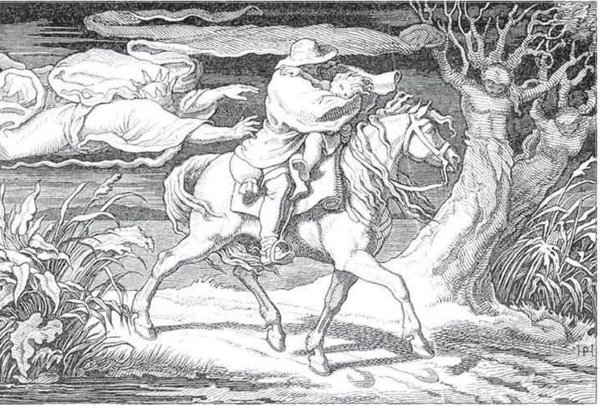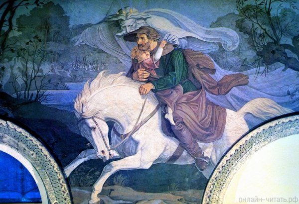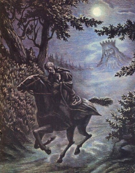Иллюстрация к балладе "Лесной царь" олицетворяет магическую и загадочную атмосферу древнего леса. На картине можно увидеть величественные деревья, покрытые листвой и мхом, создающие таинственные тени. В гуще леса расположено небольшое озеро, на поверхности которого отражается лунный свет, придающий образу еще больше мистики. В центре композиции изображен Лесной царь - высокий и гордый существ, с человекоподобными чертами, окруженный своими подданными - животными и фантастическими существами. Его корона украшена ветками и цветами, символизирующими его власть над природой. Иллюстрация передает всю прелесть и загадочность сказочного леса, а также величие и власть Лесного царя.