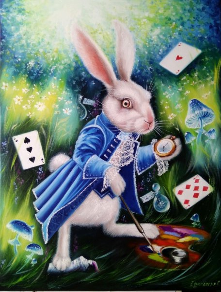 Знаменитая иллюстрация "Алиса в стране чудес" с кроликом - это одна из самых узнаваемых и популярных картин, которая стала символом произведения Льюиса Кэрролла. На этой иллюстрации мы видим Алису, маленькую девочку, сидящую на берегу реки, а перед ней стоит забавный кролик, который смотрит на нее с любопытством. Иллюстратор сумел передать всю игривость и загадочность персонажей с помощью ярких красок и детально проработанных элементов. Эта иллюстрация стала неотъемлемой частью истории о приключениях Алисы и до сих пор восхищает своей красотой и магией.