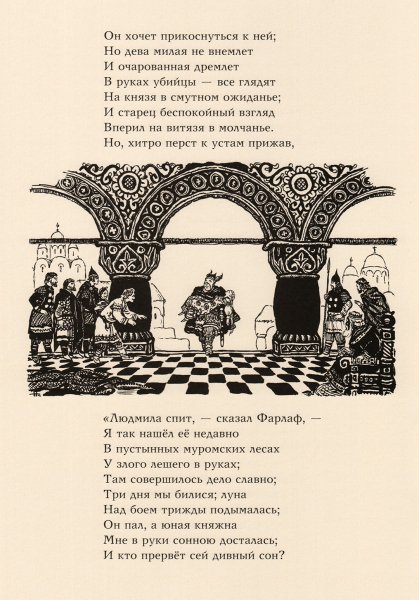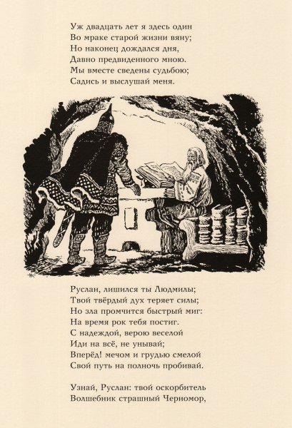 Руслан и Людмила - классическая поэма Александра Сергеевича Пушкина, которая завораживает своей красотой и эмоциональностью. Великий русский поэт создал уникальную историю о любви и приключениях, в которой главные герои Руслан и Людмила сражаются с магией и злыми силами, чтобы быть вместе. Но не только слова Пушкина делают эту поэму незабываемой - иллюстрации художника Ивана Кочергина добавляют особую глубину и красоту произведению. Его работы погружают читателя в удивительный мир фантастических существ и загадочных пейзажей, раскрывая новые смыслы и эмоции. Благодаря иллюстрациям Кочергина, Руслан и Людмила становятся еще более живыми и проникновенными, заставляя нас сопереживать героям и восхищаться великим творчеством Пушкина.