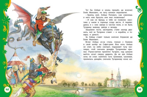Иллюстрации к былине "Алёша Попович и Тугарин Змеевич" являются великолепным визуальным дополнением к этой знаменитой русской народной сказке. Эти иллюстрации воссоздают удивительный мир героев и событий, позволяя читателям полностью погрузиться в историю о бравом юноше Алёше и его сражениях с легендарным змеем Тугариным. Отлично передавая эпическое настроение и насыщенность сюжета, иллюстрации привлекают внимание своей яркостью, детализацией и выразительностью. Благодаря этим изображениям, каждый читатель может визуализировать происходящее и почувствовать мощь, отвагу и непоколебимую силу главных персонажей. Они словно оживают на страницах книги, придают особую атмосферу и делают чтение еще более увлекательным и запоминающимся. Иллюстрации к былине "Алёша Попович и Тугарин Змеевич" не просто дополняют текст, а становятся важной частью этого произведения и помогают читателям окунуться в мир русской народной эпоса.
