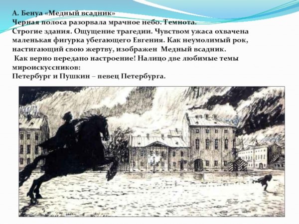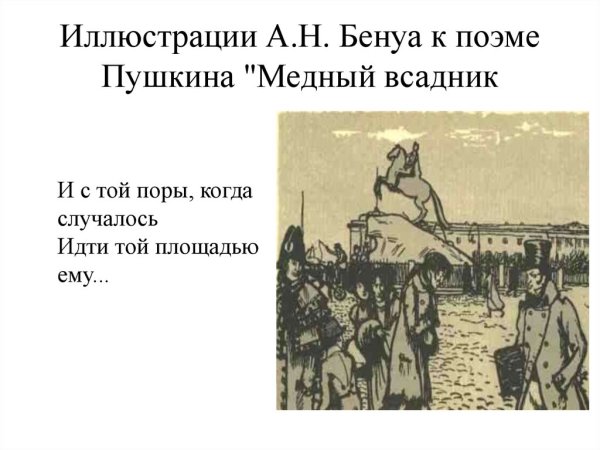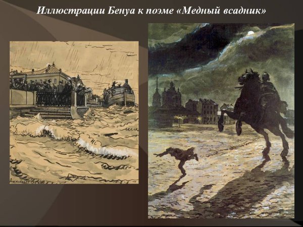 Александр Бенуа - известный русский художник, театральный деятель и писатель. Одним из его наиболее знаменитых произведений является иллюстрационная серия к поэме А.С. Пушкина "Медный всадник". В этих работах Бенуа великолепно передал атмосферу и сюжетные моменты произведения, создавая уникальные образы героев и оживляя их на страницах. Его иллюстрации отличаются высоким мастерством, простотой и одновременно выразительностью композиции, яркостью цветов и детализацией. Бенуа сумел передать всю глубину и эмоциональность произведения, раскрывая его символическое значение через свои профессиональные и художественные навыки. Иллюстрации к "Медному всаднику" Александра Бенуа стали классикой и являются неотъемлемой частью восприятия этого произведения литературы.