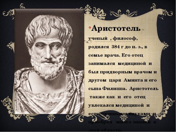 Аристотель, иллюстрация - это выражение, которое описывает связь между философом Аристотелем и использованием иллюстраций в его трудах. Аристотель был одним из наиболее влиятельных древнегреческих философов, чьи работы охватывали широкий спектр тем, включая логику, этику, политику и физику. Он использовал иллюстрации и примеры, чтобы помочь своим студентам и читателям лучше понять его концепции и аргументы. Использование иллюстраций позволяло Аристотелю объяснить сложные и абстрактные идеи с помощью конкретных и наглядных примеров, что делало его работы доступными и понятными для широкой аудитории. В целом, иллюстрации в трудах Аристотеля играли важную роль в его методе обучения и философском мышлении, а также представляют ценный источник информации для современных исследователей и студентов, интересующихся его философией.