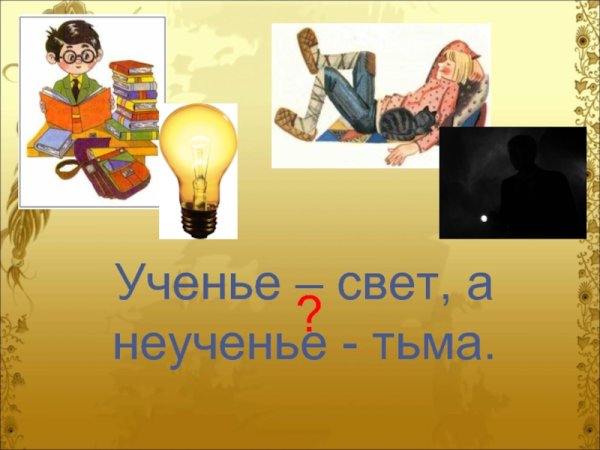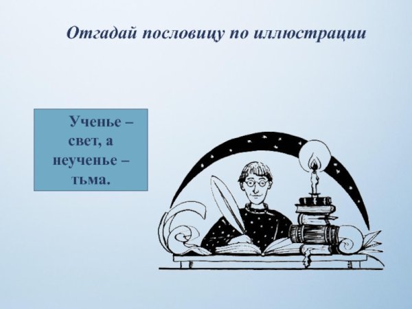 Иллюстрация к пословице "ученье свет, а неученье тьма" - это изображение, которое визуально передает смысл и значимость образования и знаний. На иллюстрации можно увидеть две фигуры: одна представляет ученика, окруженного светом и символизирующего образование, а другая - неуча, окруженного тьмой, отражающую отсутствие знаний. Ученик выглядит более ярким и просвещенным, в то время как неуча окутан темнотой и невежеством. Таким образом, иллюстрация визуализирует идею о том, что образование освещает путь человека, делает его более просвещенным, а необразованность оставляет в тьме незнания и ограничений.