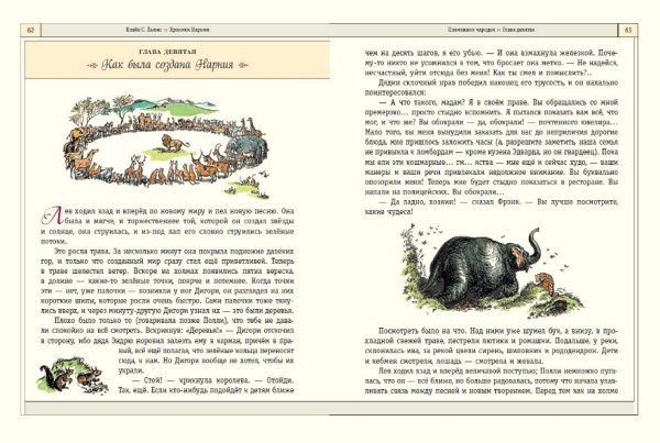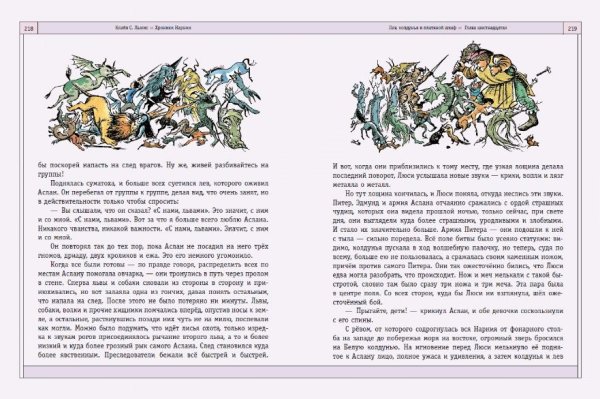 Хроники Нарнии - это магический мир, который оживает перед глазами читателей благодаря ярким и красочным иллюстрациям. Волшебные существа, загадочные леса, захватывающие приключения - все это можно увидеть на страницах этих книг. Цветные иллюстрации не только добавляют визуальную привлекательность, но и помогают погрузиться в атмосферу Нарнии, позволяя читателям воочию увидеть главных героев и пейзажи этого волшебного мира. Они становятся неотъемлемой частью чтения и придают книгам особую привлекательность для всех возрастов. Погрузитесь в мир Хроник Нарнии и насладитесь его красотой благодаря ярким иллюстрациям, которые дополняют замечательные истории Клайва Стейплз Льюиса.