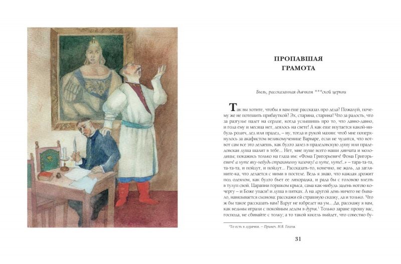 Великий русский писатель Николай Гоголь в своем произведении "Пропавшая грамота" предлагает читателям загадочную и захватывающую историю. Основная сюжетная линия рассказа закручена вокруг пропажи ценной грамоты, которая играет важную роль в судьбе персонажей. Книга не только увлекает своим интригующим сюжетом, но и поражает воображение читателя благодаря ярким иллюстрациям, которые воплощают на страницах книги главные моменты произведения. Все это делает "Пропавшую грамоту" поистине незабываемым литературным произведением, которое погружает читателя в мир загадок и тайн, раскрывая перед ним необычные образы и события.