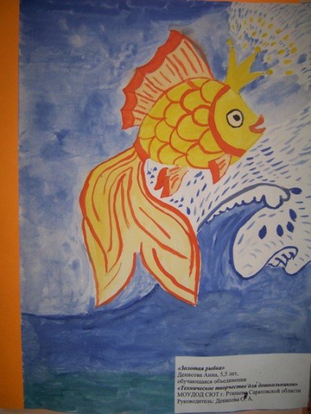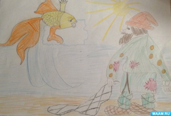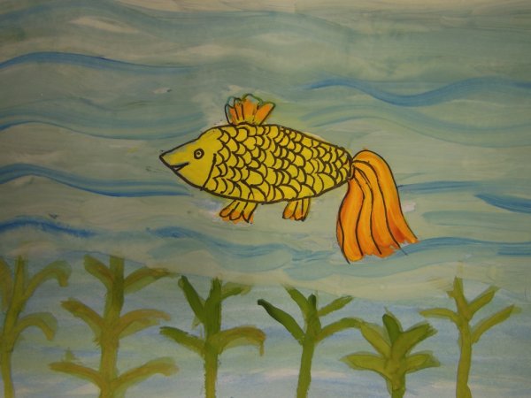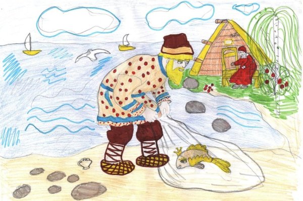 Иллюстрация к сказке "Золотая рыбка" - это уникальный рисунок, который привлекает внимание своей яркостью и детализацией. На нем изображена загадочная рыбка, окруженная водорослями и другими морскими обитателями. Золотая шелковистая чешуя рыбки переливается на солнце, создавая эффектную игру цветов. Рисунок передает атмосферу сказочного подводного мира, полного загадок и чудес. Он захватывает взгляд и вызывает желание окунуться в этот удивительный мир сказки. Эта иллюстрация прекрасно дополнит любую книгу или постер, добавляя в них элементы волшебства и магии.