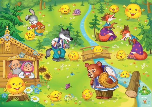 Эта красочная иллюстрация представляет собой великолепное воплощение знаменитой русской народной сказки "Колобок". На ней изображены все главные персонажи этой увлекательной истории: колобок, бабушка, дедушка и лиса. Яркие и насыщенные цвета подчеркивают магическую атмосферу сказки, а улыбающиеся герои наполняют картину радостью и весельем. Ребята будут с удовольствием рассматривать каждый маленький деталь этой иллюстрации, погружаясь в захватывающий мир приключений Колобка и его друзей. Это идеальный выбор для тех, кто хочет не только читать сказки, но и видеть их оживленными на страницах книги.