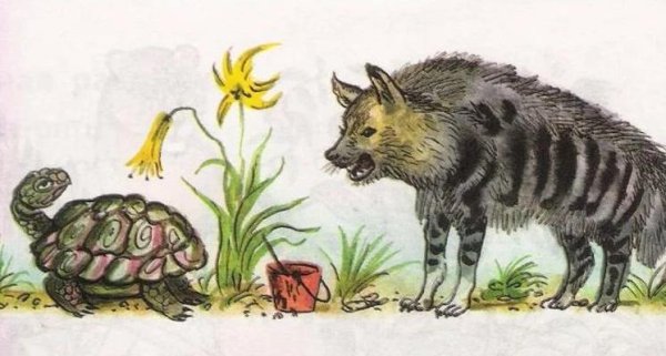 Иллюстрация к сказке "Гиена и черепаха" является ярким и увлекательным визуальным представлением этого захватывающего произведения. На рисунке можно увидеть гиену и черепаху, двух главных персонажей сказки, в их приключениях и похождениях. Иллюстратор передает атмосферу сказки, используя сочные цвета и выразительные жесты героев. Каждая деталь и элемент иллюстрации привлекают внимание зрителя, позволяя ему окунуться в мир фантазии и приключений. Эта красочная иллюстрация безусловно заинтересует и порадует как детей, так и взрослых, ожидая новых поворотов сюжета и неожиданных событий, которые будут раскрыты в сказке "Гиена и черепаха".