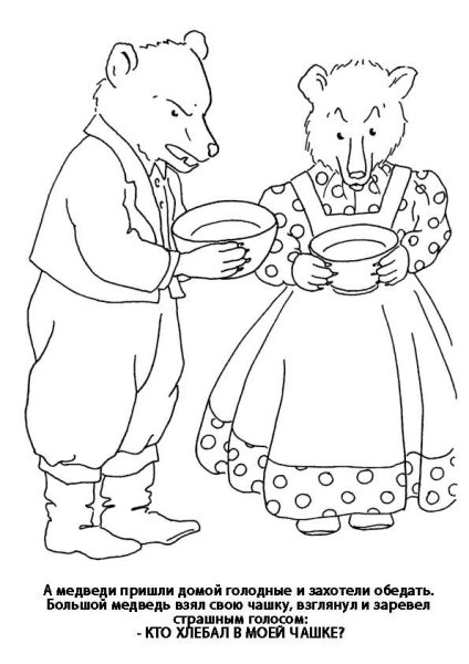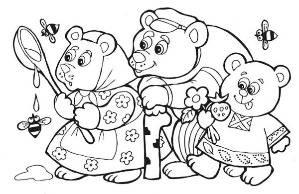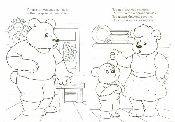 Иллюстрации к сказке "Три медведя" представлены в виде увлекательной раскраски, которая позволяет детям не только насладиться красочными изображениями главных героев и их приключений, но и развить свое творческое мышление и мелкую моторику. Каждая страница включает в себя яркие и детализированные рисунки, передающие атмосферу сказки и помогающие ребенку визуализировать происходящее. Раскрашивание этих иллюстраций станет увлекательным занятием для малышей, которое поможет им не только провести время с пользой, но и внести свой творческий вклад в сказочный мир трех медведей.