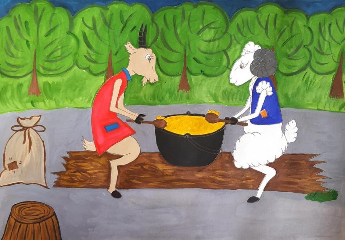 Захватывающая иллюстрация к сказке "Коза и баран" поразит воображение как детей, так и взрослых. На картине изображены два главных персонажа - миловидная козочка и могучий баран. Их яркий и насыщенный образ передает всю суть и атмосферу этой удивительной истории. С помощью своего искусства художник позволяет нам проникнуться эмоциями героев, их храбростью и решимостью. Эта великолепная иллюстрация станет неотъемлемой частью любой книги или сказочного альбома, заставляя читателя окунуться в мир приключений и фантазий.