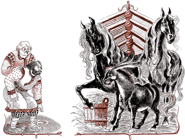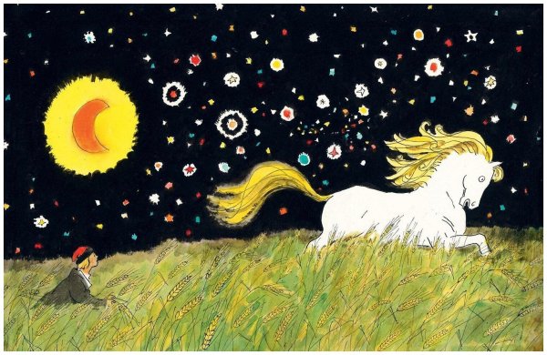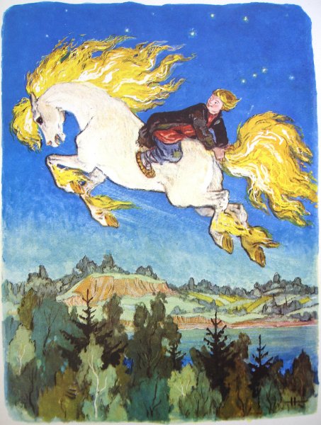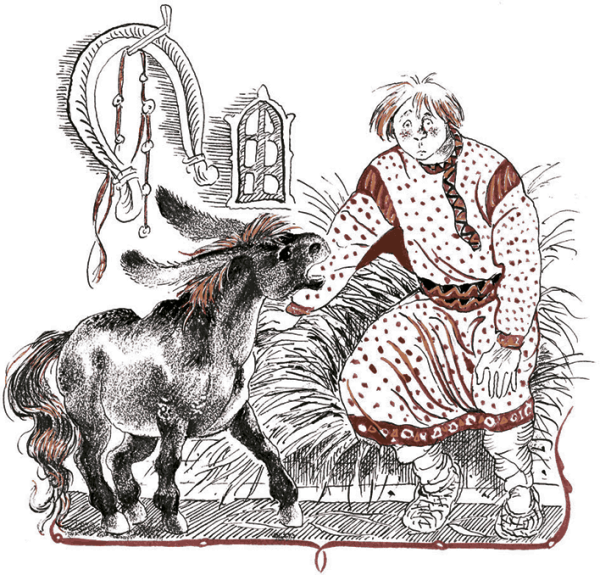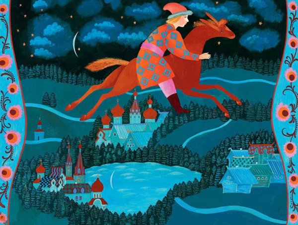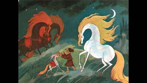Иллюстрация к сказке "Конек Горбунок" представляет собой живописное изображение главного героя - маленького лошаденка с горбом на спине. На рисунке переданы все основные детали и атрибуты этого персонажа: его игривый взгляд, ушки, грива, хвост и, конечно же, горб. Каждая линия и цвет, каждая тень и контур создают ощущение движения и живости. Иллюстрация привлекает внимание зрителя своей яркостью и насыщенностью цветов, а также удивительной детализацией. Она помогает визуализировать образ этого замечательного персонажа и погрузиться в волшебный мир сказки.