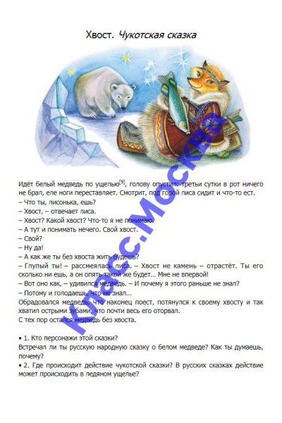 Иллюстрация к сказке "Хвост" - это великолепное произведение, которое оживляет чукотскую народную сказку. Эта увлекательная история рассказывает о приключениях маленькой лисички, у которой необычно длинный хвост. Вместе со своими друзьями, она отправляется в захватывающее путешествие, полное опасностей и загадок. Иллюстрация передает всю магию этой сказки, оживляя персонажей и пропитывая каждый кадр яркими красками и деталями. Она подарит читателям возможность окунуться в удивительный мир чукотской культуры и насладиться каждым моментом этой незабываемой истории.