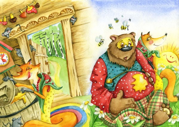 Эта прекрасная иллюстрация представляет собой волшебное сочетание медведя и лисы из знаменитой сказки. На картине мы видим, как эти два персонажа взаимодействуют друг с другом в самых разных ситуациях. Медведь, сильный и могучий, показан в своей полной красе, а лиса, хитрая и ловкая, не отстает от него ни на шаг. Их выразительные глаза и живые мимика создают особую атмосферу и притягивают внимание зрителя. Это иллюстрация, которая буквально оживает перед нашими глазами и заставляет нас верить в чудеса. Она яркая, запоминающаяся и точно подчеркивает ключевые моменты сказки.