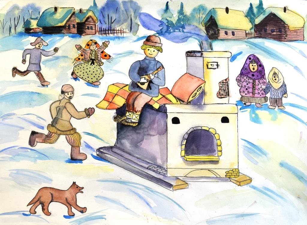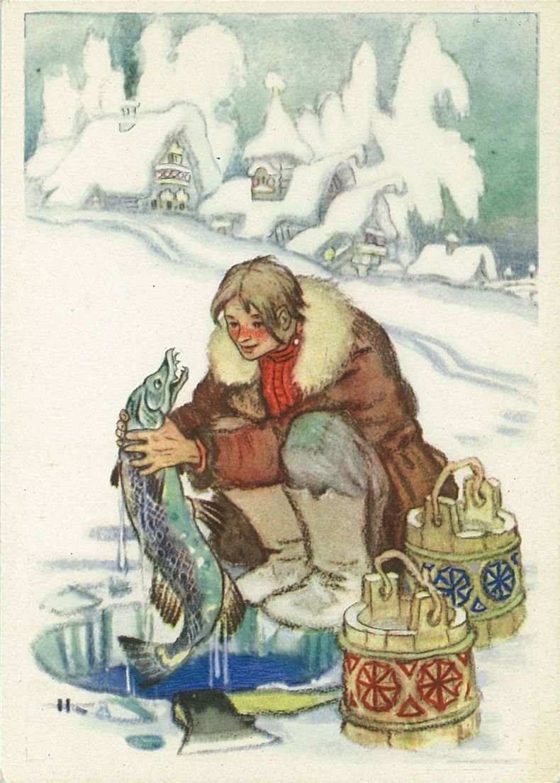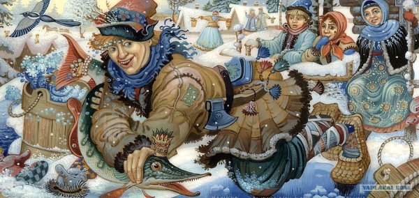 Иллюстрация к сказке "По щучьему велению" представляет собой яркое и увлекательное изображение, которое оживляет события и персонажей этого прекрасного произведения. На картине можно увидеть маленькую щуку, обладающую магическими способностями, которая волшебным образом соткала паутину вокруг себя. Паутина символизирует волшебство и невероятные возможности, которые открываются перед главной героиней. Вокруг щуки расположены другие персонажи сказки: лесные звери и птицы, которые с интересом и восхищением наблюдают за ее творчеством. Иллюстрация привлекает внимание своим ярким цветовым решением, прекрасной детализацией и атмосферой волшебства, создавая живое представление о сказочном мире и его героях.