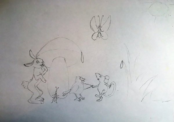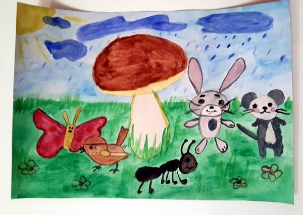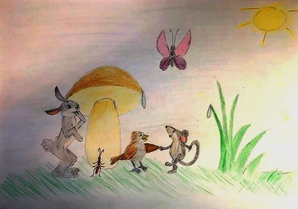 Иллюстрация к сказке "Под грибом" создана с использованием карандаша, что придает ей особый шарм и мягкость. На рисунке изображен волшебный лес с густой зеленью и большим грибом в центре. Вокруг гриба разбросаны разноцветные цветы, а на его шляпе можно увидеть маленьких лесных существ - гномов и эльфов, которые прячутся от посторонних глаз. Каждая деталь этой иллюстрации тщательно проработана, чтобы передать атмосферу волшебства и загадочности, характерные для сказочного мира. Идеальное сочетание мастерства художника и нежности карандашной техники делают эту иллюстрацию по-настоящему уникальной и привлекательной для любителей сказок и искусства.