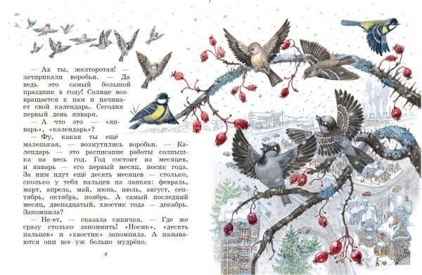 Иллюстрация к сказке "Синичкин календарь" - это яркий и запоминающийся графический образ, который прекрасно воплощает сюжет и настроение этой замечательной истории. В центре иллюстрации можно увидеть милую синичку, которая является главной героиней сказки. Она изображена в окружении прекрасной природы, с деревьями, цветами и птичками, что создает атмосферу волшебства и чудеса. Каждый элемент иллюстрации тщательно проработан и передает основные идеи и образы, которые присутствуют в сказке. Благодаря своей красоте и яркости, эта иллюстрация станет отличным дополнением к книге или печатной продукции, помогая визуализировать и запомнить события и персонажей "Синичкиного календаря".