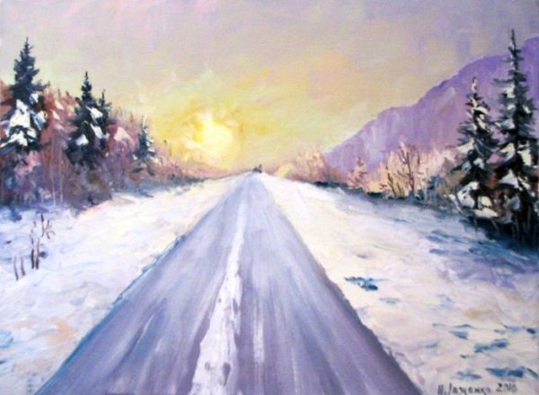 Зимняя дорога – это красочная иллюстрация, которая оживляет сказочный мир перед глазами зрителя. На ней изображена снежная тропинка, усыпанная белым пушистым снегом, которая ведет в загадочный лес. Покрытые инеем деревья и кусты создают атмосферу волшебства и загадочности. Вдали виднеется сияние ярких звезд на снежном небе, которое освещает путь и создает ощущение спокойствия и таинственности. Зимняя дорога – это отличное дополнение к сказочной атмосфере и позволяет зрителю окунуться в мир фантазий и чудес.