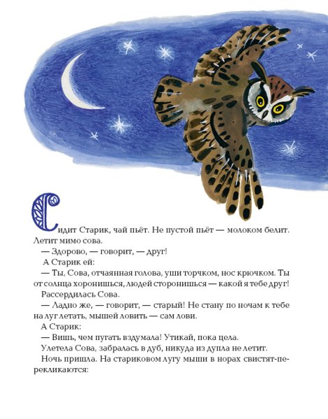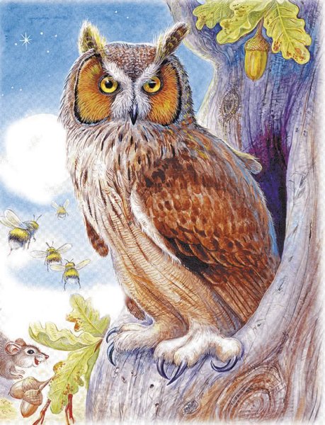 Иллюстрация к сказке "Бианки Сова" является великолепным произведением, которое привлекает внимание своей красочностью и детализацией. На ней изображена сова - символ мудрости и загадочности, которая притягивает взгляд своей загадочной атмосферой. Реалистичные перья, выразительные глаза и покровительственное выражение лица создают ощущение, будто сова оживает на странице. Иллюстрация великолепно передает основную идею сказки, раскрывая её с помощью визуального языка и запечатлевая магию природы и её обитателей. Эта удивительная работа не только визуально привлекательна, но и подчеркивает значимость мудрости и природной красоты в жизни каждого читателя.