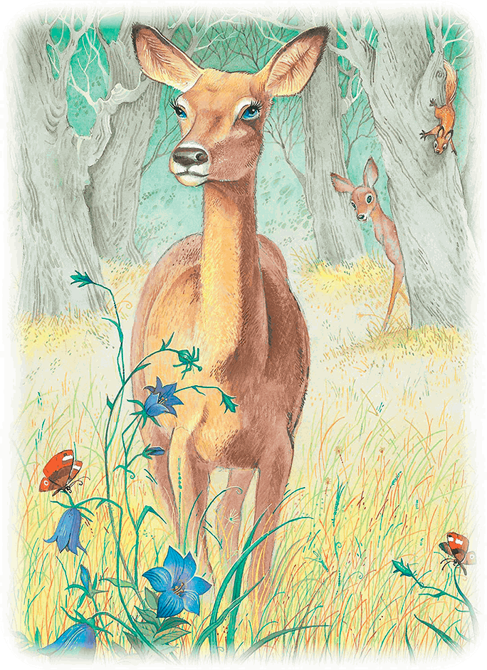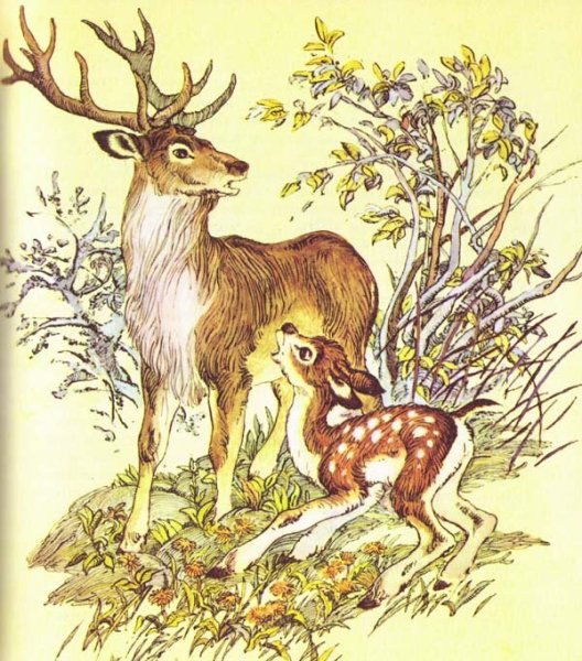 Сказка "Бэмби" - это удивительная и трогательная история о маленьком олененке, который попадает в мир природы и сталкивается с различными испытаниями. Иллюстрации к этой сказке позволяют полностью погрузиться в волшебную атмосферу повествования. Они яркие, пленительные и полны эмоций. Каждая иллюстрация передает особую магию и проникновенность событий, позволяя читателю легко визуализировать мир Бэмби и его друзей. Благодаря выразительности и детализации рисунков, иллюстраторы создают неповторимую атмосферу и делают чтение сказки еще более увлекательным и захватывающим. Эти иллюстрации открывают возможность путешествовать вместе с главным героем и наслаждаться каждым мгновением его приключений. Все любители сказок и фантастических историй будут в восторге от иллюстраций к сказке "Бэмби".