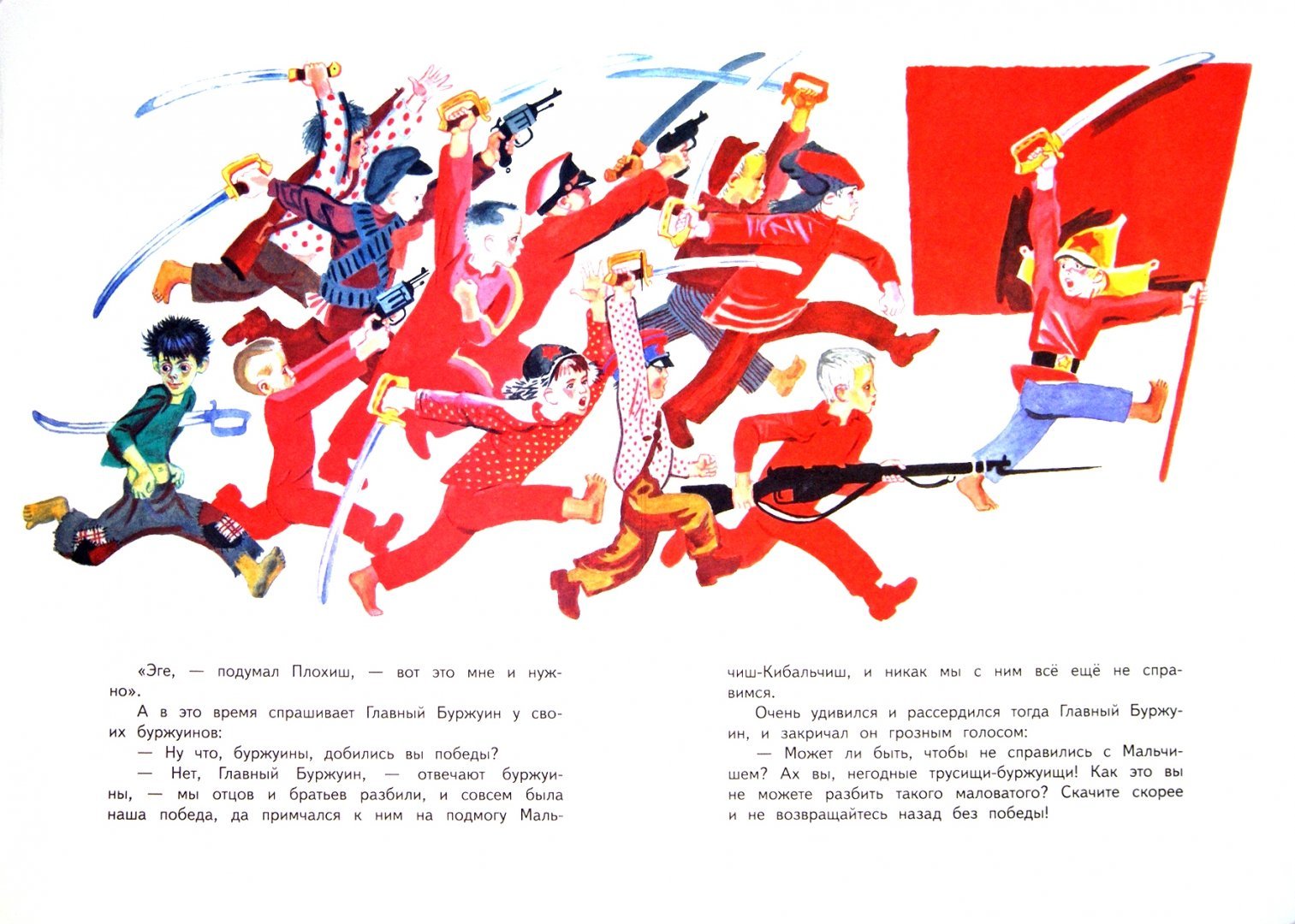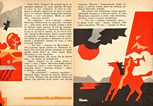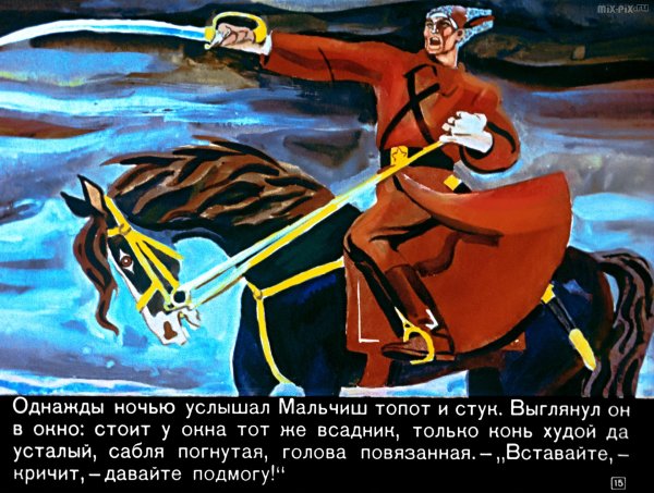 Иллюстрация к сказке "Мальчиш-кибальчиш" - это живописное изображение, которое воплощает в себе магию и приключения этой знаменитой истории. На картине можно увидеть главного героя - самого Мальчиша-кибальчиша, с его непоседливыми прической и яркими нарядами. Вокруг него развертывается целый мир фантастических событий, где встречаются добрые феи, злые колдуны, таинственные леса и волшебные замки. Иллюстрация оживляет сказочный сюжет, передавая его атмосферу и эмоции через яркие цвета, детально проработанные детали и игру света и тени. Она позволяет зрителю окунуться в мир фантазий и расслабиться в волшебной атмосфере, открывая глазам все чудеса этой удивительной истории.