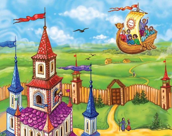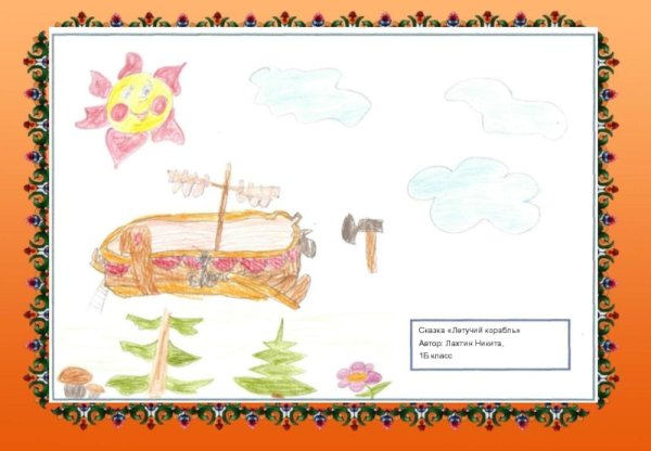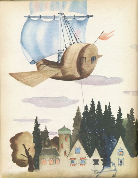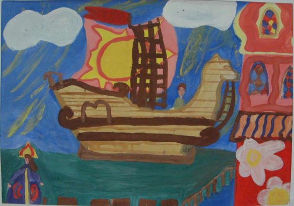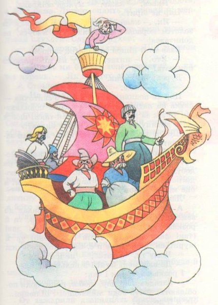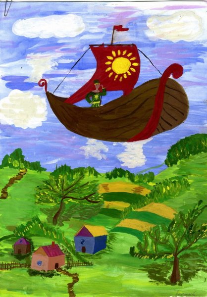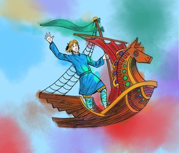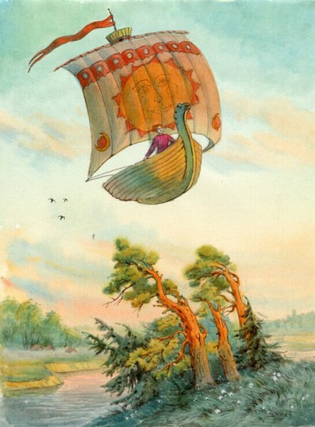 Иллюстрация к сказке "Летучий корабль" воссоздает удивительный мир фантастической приключенческой истории. На рисунке можно увидеть старинный корабль, полностью покрытый парусами, свободно парящий над облачными вершинами гор. Его форма и декорации напоминают о прекрасной эпохе морских путешествий, а яркие цвета и детали создают впечатление живости и движения. Волшебство и таинственность сказочного мира переданы через мистическую атмосферу, которая окружает корабль. Иллюстрация к сказке "Летучий корабль" погружает зрителя в мир фантазий и приключений, заставляя его мечтать о далеких странствиях и неизведанных просторах морей.