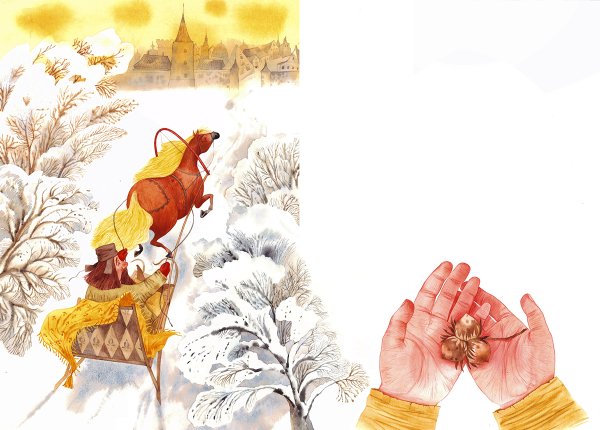 Иллюстрация к сказке "Три орешка для Золушки" - это великолепное произведение искусства, которое прекрасно передает магию и романтику этой известной истории. На картине изображены Золушка и ее волшебная фея-крестная, олицетворяющие надежду и желание. Они стоят перед трех орешков, символизирующих исполнение желаний, а также перед замком, где состоится волшебный бал. Яркие и насыщенные цвета, детальная проработка мельчайших элементов и умелый выбор композиции делают эту иллюстрацию по-настоящему запоминающейся и впечатляющей. Она позволяет окунуться в мир сказочной красоты и верить в то, что мечты сбываются. Эта иллюстрация станет отличным дополнением к любой коллекции или подарком для любителей классических сказок.