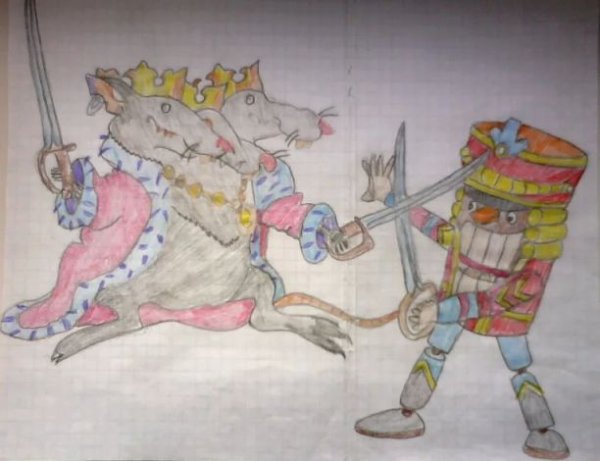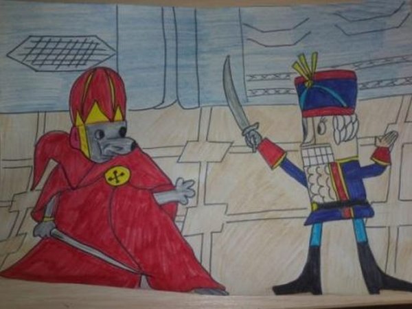 Иллюстрация к сказке "Щелкунчик и мышиный король" легко передает всю магию и волшебство этого знаменитого произведения. На рисунке можно увидеть щелкунчика, который превратился из деревянной игрушки в настоящего принца. Вокруг него разгорается схватка с мышиным королем и его армией мышей. Каждая деталь иллюстрации тщательно проработана: великолепные костюмы персонажей, нежные оттенки фона, блестящие глаза щелкунчика и зловещий вид мышиного короля. Смотря на эту картину, каждый читатель точно погружается в мир сказки, где события захватывают его полностью. Иллюстрация легко переносит нас в фантастическую и удивительную атмосферу "Щелкунчика и мышиного короля", заставляя нас верить в чудеса и волшебство.