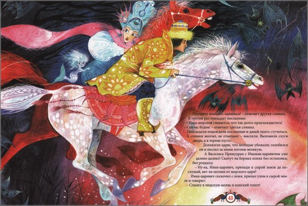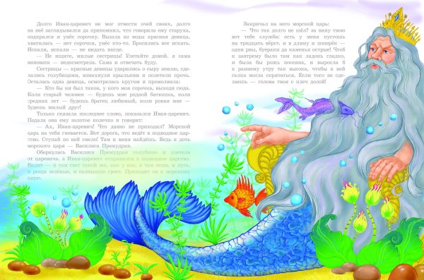 Представляете себе удивительную иллюстрацию к знаменитой сказке "Морской царь и Василиса Премудрая"? Это волшебный мир подводного царства, где прозрачные водоросли играют на свету, а разноцветные рыбки плавают вокруг. На картине видно, как морской царь, одетый в роскошные одежды, сияет легким блеском, а его корона увенчана жемчужинами. Рядом с ним стоит великолепная Василиса Премудрая, в длинном платье, украшенном морскими раковинами. Она держит чашу с волшебной водой, которая придает любые желания. Их лица переплетены улыбками и сияют от радости. Картина эта наполнена тайной и загадкой, она заставляет задуматься о силе мудрости и магии, которая может сохраниться даже в самых необычных условиях.