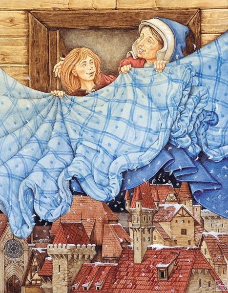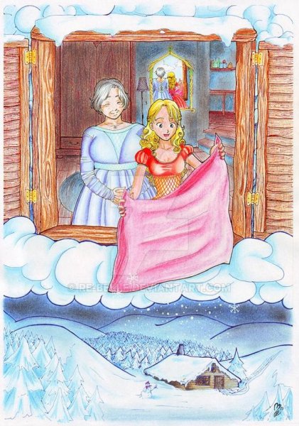 Госпожа метелица - волшебный персонаж, чья красота и магия не знают границ. Великолепные иллюстрации к сказке, изображающие эту загадочную и прекрасную женщину, погружают нас в удивительный мир волшебства и фантазии. Каждая деталь на рисунках оживляет героиню и приносит нам радость и восторг. Госпожа метелица раскидывает свои шелковистые волосы по ветрам и создает вокруг себя вихри снежных хлопьев, которые играют между ее пальцами, словно магический танец. Ее одежда украшена кристаллами льда, которые сияют и трепещут на свету. Увидев такие иллюстрации, мы сразу погружаемся в атмосферу сказки, мечты и волшебства.