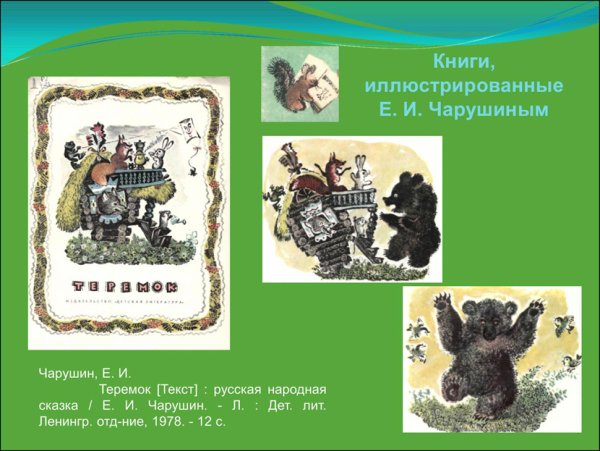 Евгений Чарушин - талантливый иллюстратор, чьи работы оживляют страницы сказок. Его иллюстрации к сказкам погружают читателя в мир волшебства и фантазии. Каждая его работа пропитана неповторимой атмосферой, которая заставляет забыть о реальности и погрузиться в удивительные приключения героев. Его мастерство передачи эмоций и детализации поражает и впечатляет. Благодаря своему таланту и вниманию к деталям, Чарушин создает иллюстрации, которые становятся настоящими произведениями искусства и делают чтение сказок незабываемым и увлекательным для маленьких и больших любителей литературы.