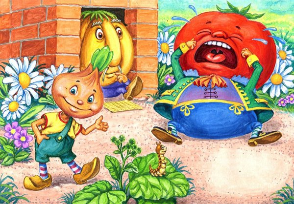 Иллюстрация к сказке "Приключения Чиполлино" оживляет воображение и погружает нас в замечательный мир этого необычного героя. На картине мы можем увидеть Чиполлино, маленькую луковицу с ножками и глазками, который стоит перед нами с открытым ртом, готовый поведать свою захватывающую историю. Вокруг него расположены другие персонажи - фрукты и овощи, такие как зеленая груша с сияющими глазами и красными щеками, улыбающийся помидор и смеющийся огурец. Они создают атмосферу яркости и радости, привлекая наше внимание и призывая нас присоединиться к их приключениям. Иллюстрация к сказке "Приключения Чиполлино" воплощает в себе всю волшебность и чарующую атмосферу этой неповторимой истории, которая порадует как детей, так и взрослых.