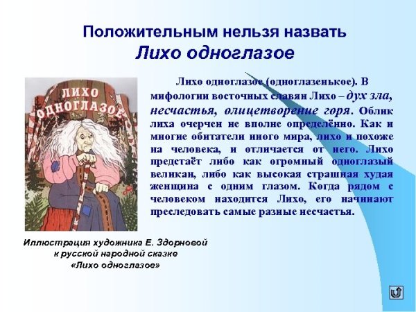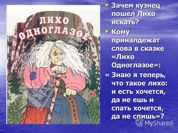 Иллюстрация к сказке "Лихо одноглазое" - это великолепное произведение искусства, которое увлекает зрителя в мир фантазии и волшебства. Работа художника непревзойденно передает атмосферу загадочности и таинственности этой знаменитой сказки. Одноглазое Лихо изображено с такими деталями, что кажется, будто оно захочет выскочить со страницы и оживиться. Каждая черта лица, каждая тень и каждый цвет создают глубокий эмоциональный отклик у зрителя, заставляя его полностью погрузиться в интригующий мир сказочных приключений. Иллюстрация к сказке "Лихо одноглазое" - это настоящее произведение искусства, которое не оставит равнодушными ни маленьких, ни взрослых читателей.