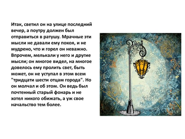 Иллюстрации к сказке "Старый уличный фонарь" привносят в мир детской литературы неповторимую атмосферу старинного городского пейзажа. На этих ярких иллюстрациях можно увидеть изящные контуры старого уличного фонаря, окруженного таинственными тенью и светом. Они передают ощущение магии и загадочности, которые присутствуют в самой сказке. Используя живописные цвета и детали, иллюстратор создает впечатление, что фонарь способен рассказать свою собственную историю. Эти иллюстрации позволяют читателям окунуться в удивительное путешествие по миру фантазии и волшебства, которое открывается через приключения главного героя сказки - старого уличного фонаря.