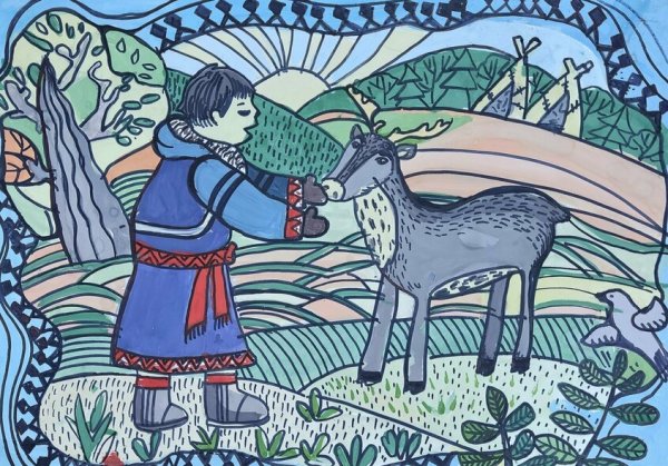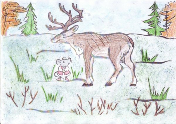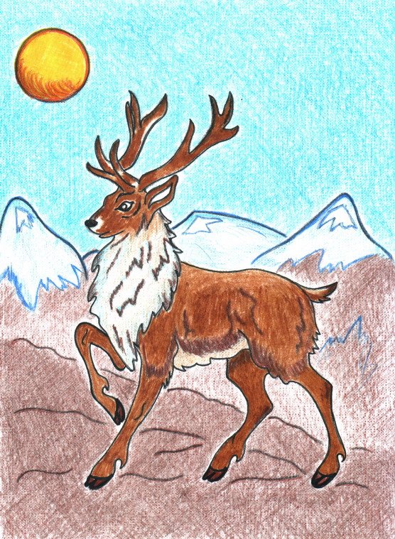 Иллюстрация к сказке "Гордый олень" представляет собой прекрасное изображение могучего животного, которое отражает его гордость и силу. На рисунке можно увидеть оленя с высоко поднятой головой, статными рогами и яркими глазами, что символизирует его самоутверждение и независимость. Олень грациозно стоит на задних ногах, демонстрируя свою величественность и достоинство перед окружающими. Каждая черта и деталь иллюстрации тщательно проработаны, чтобы передать зрителю всю мощь и важность этого персонажа сказки "Гордый олень".