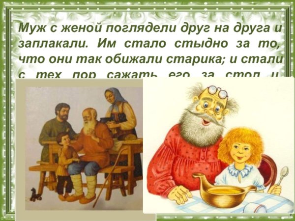 Иллюстрация к сказке "Старый дед и внучек" является важным элементом, который помогает визуализировать и передать атмосферу этой замечательной истории. На рисунке можно увидеть старого дедушку и его внучка, которые находятся в окружении прекрасной природы или сидят уютно у камина. Иллюстрация оживляет слова сказки, подчеркивая главные моменты и создавая особое чувство тепла и семейного благополучия. Цветовая палитра может быть яркой и насыщенной, чтобы привлечь внимание детей и заинтересовать их внимание к чтению. Эта иллюстрация является не только украшением книги, но и важным элементом, который помогает маленьким читателям легко представить себе героев и события сказки "Старый дед и внучек".