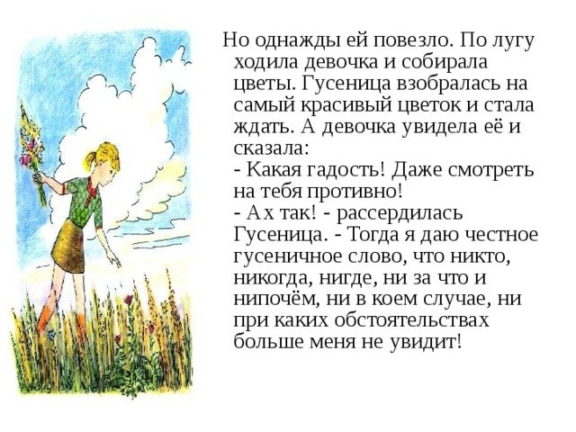 Честное гусеничное – яркая иллюстрация, которая оживляет страницы сказки своей неповторимой красотой. На этой иллюстрации можно увидеть прекрасную гусеницу, которая символизирует честность и доброту. Ее многокрасочный плащ из зеленых листьев и ярких цветов притягивает взгляд, а ее улыбка наполняет сердца радостью и надеждой. Честная гусеница приносит в сказку особое волшебство, напоминая нам о важности честности и верности своим принципам. Благодаря этой уникальной иллюстрации, читатель окунется в мир сказки и проникнется ее глубоким смыслом, несущим в себе жизненные уроки и истинные ценности.