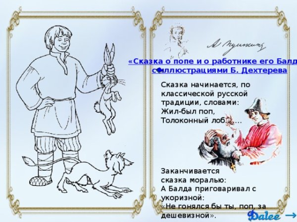 Иллюстрация к сказке о попе и работнике – это визуальное произведение, которое передает атмосферу и сюжет этого знаменитого литературного произведения. Рисунок представляет собой живописную картину, на которой изображены главные герои - поп и его балда-работник. Они могут быть изображены в различных ситуациях, таких как забавные иллюстрации к комическим моментам сказки или серьезные иллюстрации, передающие глубину переживаний персонажей. В любом случае, иллюстрация к сказке о попе и работнике поможет читателю еще глубже погрузиться в мир этой уникальной истории и оживить ее в своем воображении.