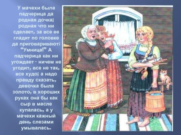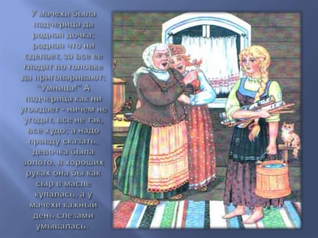 Иллюстрации к сказке "Падчерица и мачехина дочка" - это визуальное оформление, которое помогает воссоздать атмосферу этой известной истории. Каждая иллюстрация передает основные сюжетные моменты и эмоции героев, позволяя читателю более глубоко погрузиться в мир сказки. Они могут быть выполнены в различных стилях и техниках, от классического рисунка до цифровой графики, создавая уникальный образ и передавая индивидуальность каждого персонажа. Иллюстрации яркие, красочные и привлекательные, вызывая живой интерес к чтению и позволяющие воображению свободно творить. Благодаря этим иллюстрациям, сказка "Падчерица и мачехина дочка" становится еще более запоминающейся и захватывающей для читателя.