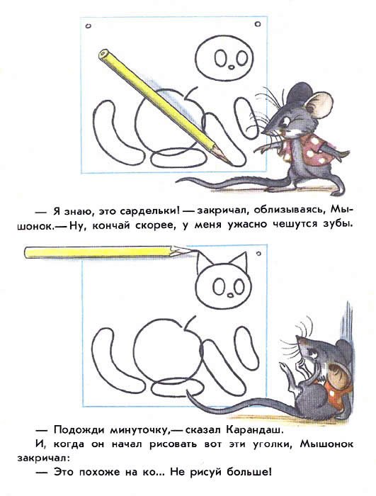 Иллюстрации к сказке "Мышонок и карандаш" от известного русского писателя Корнея Чуковского – это настоящее воплощение волшебного мира, который оживает на страницах этой замечательной книги. Каждая иллюстрация прекрасно дополняет текст сказки и помогает читателю глубже погрузиться в ее сюжет. Нежные и яркие цвета, аккуратная проработка деталей и выразительные лица персонажей делают эти иллюстрации настолько привлекательными, что даже самые маленькие читатели будут с удовольствием рассматривать их снова и снова. Благодаря таланту художника, мышонок и карандаш становятся живыми и веселыми героями, с которыми каждый может почувствовать себя настоящим другом. Иллюстрации к сказке "Мышонок и карандаш" способны пленить сердца не только детей, но и взрослых, создавая особенную атмосферу сказочности и радости.