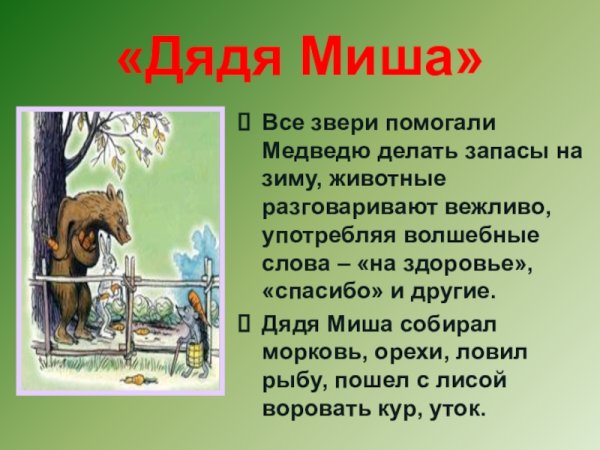 Волшебная иллюстрация к знаменитой сказке Сутеева "Дядя Миша" привлечет внимание как детей, так и взрослых. Она оживляет уникальный мир этой незабываемой истории, рассказывая о добродушном дяде Мише, который жил в старинном домике на окраине леса. Невероятные детали и яркие цвета на иллюстрации позволяют полностью погрузиться в атмосферу сказочного произведения. Великолепное изображение героев и их приключений воссоздает магию и чудеса, описанные в истории. Эта увлекательная иллюстрация не только порадует глаза, но и заставит вас вспомнить самые трогательные моменты из сказки Сутеева "Дядя Миша".