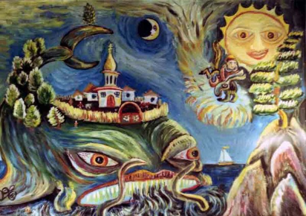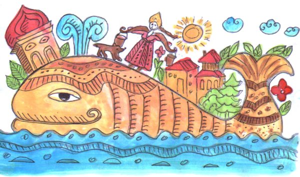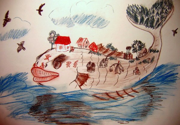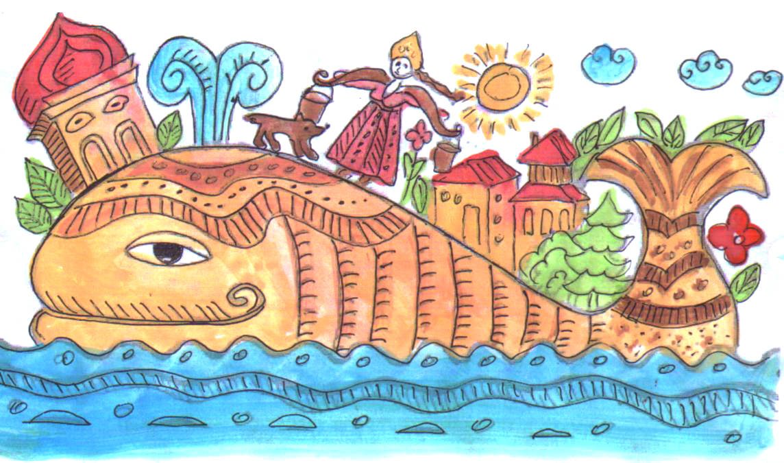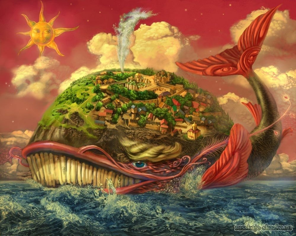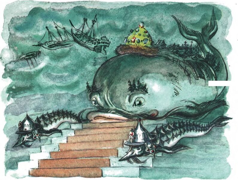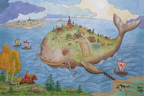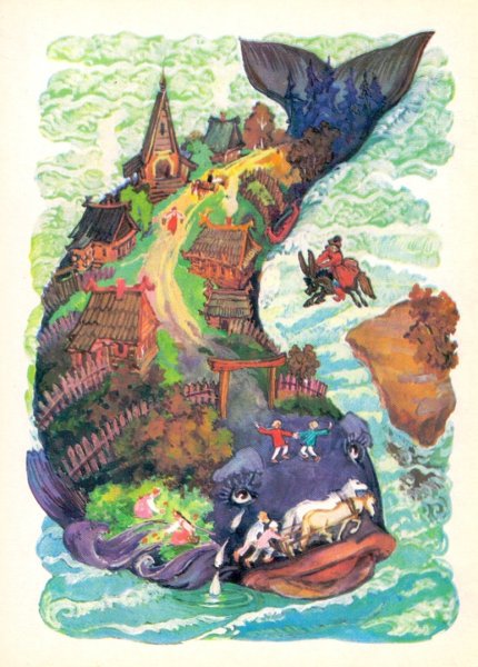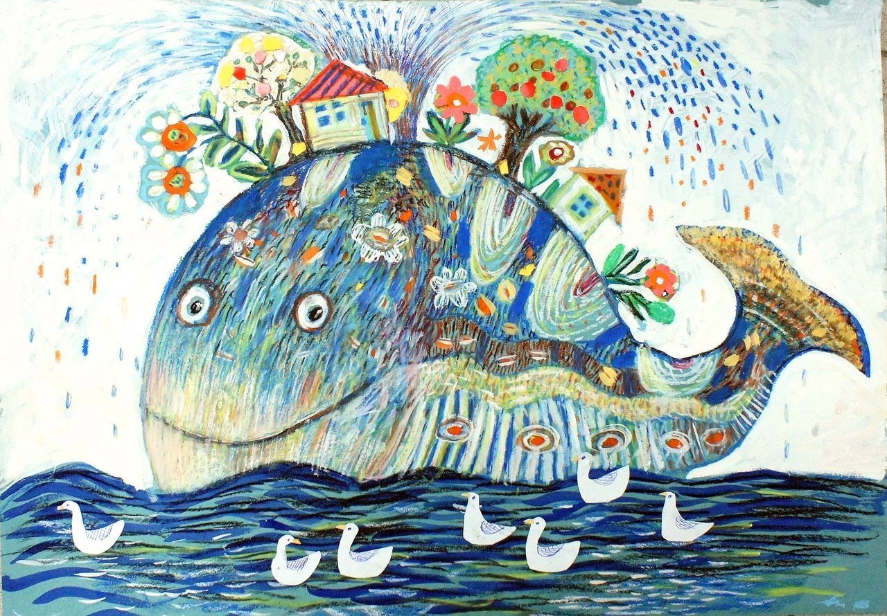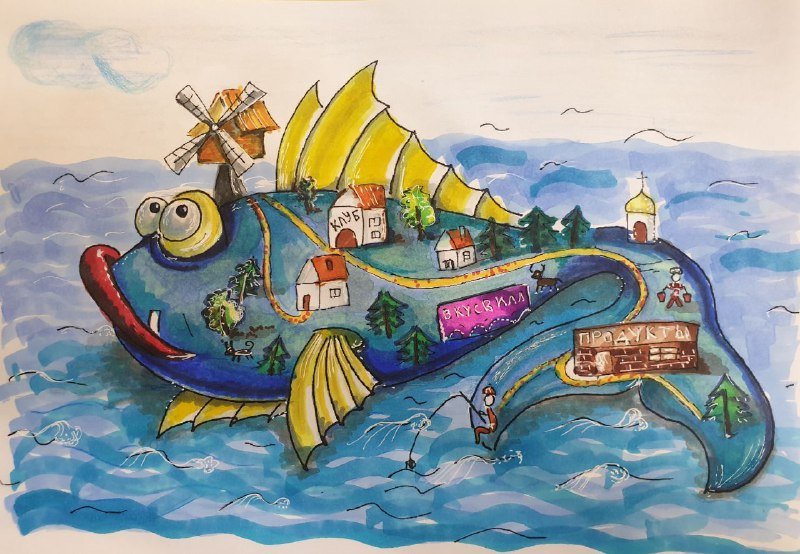Эта красочная иллюстрация великолепно передает магию и волшебство сказки "Чудо-юдо рыба Кит". На картине изображен огромный кит, окруженный яркими морскими обитателями. Вода, раскачиваясь вокруг него, создает впечатление движения и жизни. Главный герой сказки, чудесная юдо рыба Кит, плавает среди волн, светящихся отражениями разных цветов, придавая этому произведению дополнительную волшебность. Иллюстрация привлекает внимание своей красотой и таинственностью, вызывая желание окунуться в мир морских приключений.