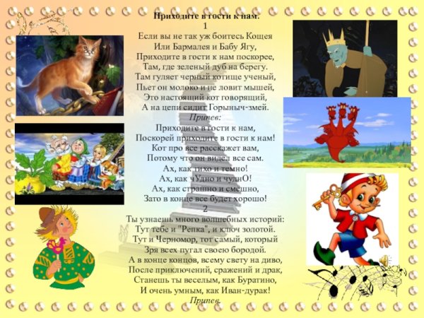 Иллюстрация к песне "В гостях у сказки" - это волшебное и захватывающее изображение, которое передает всю магию и очарование этой замечательной песни. На иллюстрации можно увидеть яркий и красочный ландшафт, полный фантастических созданий, волшебных растений и маленьких сказочных героев. В каждой детали можно ощутить теплоту и доброту, которые присущи этой песне. Иллюстрация приглашает нас погрузиться в мир сказок, где все возможно, и вместе с героями открывать новые и захватывающие приключения. Она станет прекрасным дополнением к песне "В гостях у сказки", помогая нам еще глубже погрузиться в ее атмосферу и насладиться каждым звуком и словом.