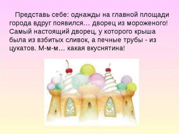 Всем известно, что детские сказки – это мир фантазии и волшебства. А если в этот мир добавить еще и аппетитные сладости, то получится настоящая сказка для гурманов! Представьте себе Дворец из Мороженого, где стены, потолок и даже мебель выполнены из самого нежного и вкусного мороженого. Иллюстрации к этой сказке заставляют слюнки текти: высокие башни, украшенные шариками мороженого разных цветов и вкусов, ледяные скульптуры из мороженого в форме принцесс и прекрасных замков. В этом мире дети могут не только наслаждаться сказочными приключениями, но и насыщать свое воображение сладкими и манящими ароматами мороженого. Проникнувшись сказочной атмосферой, они смогут погрузиться в мир сладких грез и испытать неповторимые вкусовые ощущения. Дворец из Мороженого – это настоящий рай для сладкоежек и любителей сказок, где каждая страница иллюстрации превращается в манящий шедевр, который невозможно оторвать от глаз.